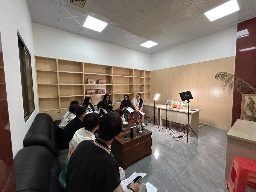 在工作人员带领下,服务队成员熟悉了日常的工作环境,并观摩学习了广宁县首佳农业专业合作社的日常直播。观摩过后,服务队召开了工作筹备会议,讨论并安排了每日的具体行程规划以及电商直播模式、宣传视频的创意、调研报告的构思等,正式开启本次实践。